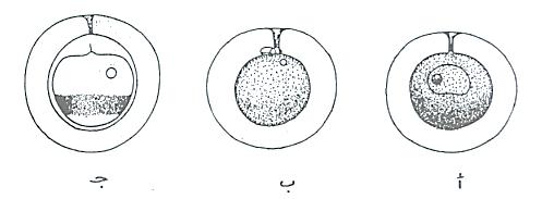 أ) خلية بيضية ب) بيضة ناضجة جاهزة للإلقاح ج) بيضة ملحة