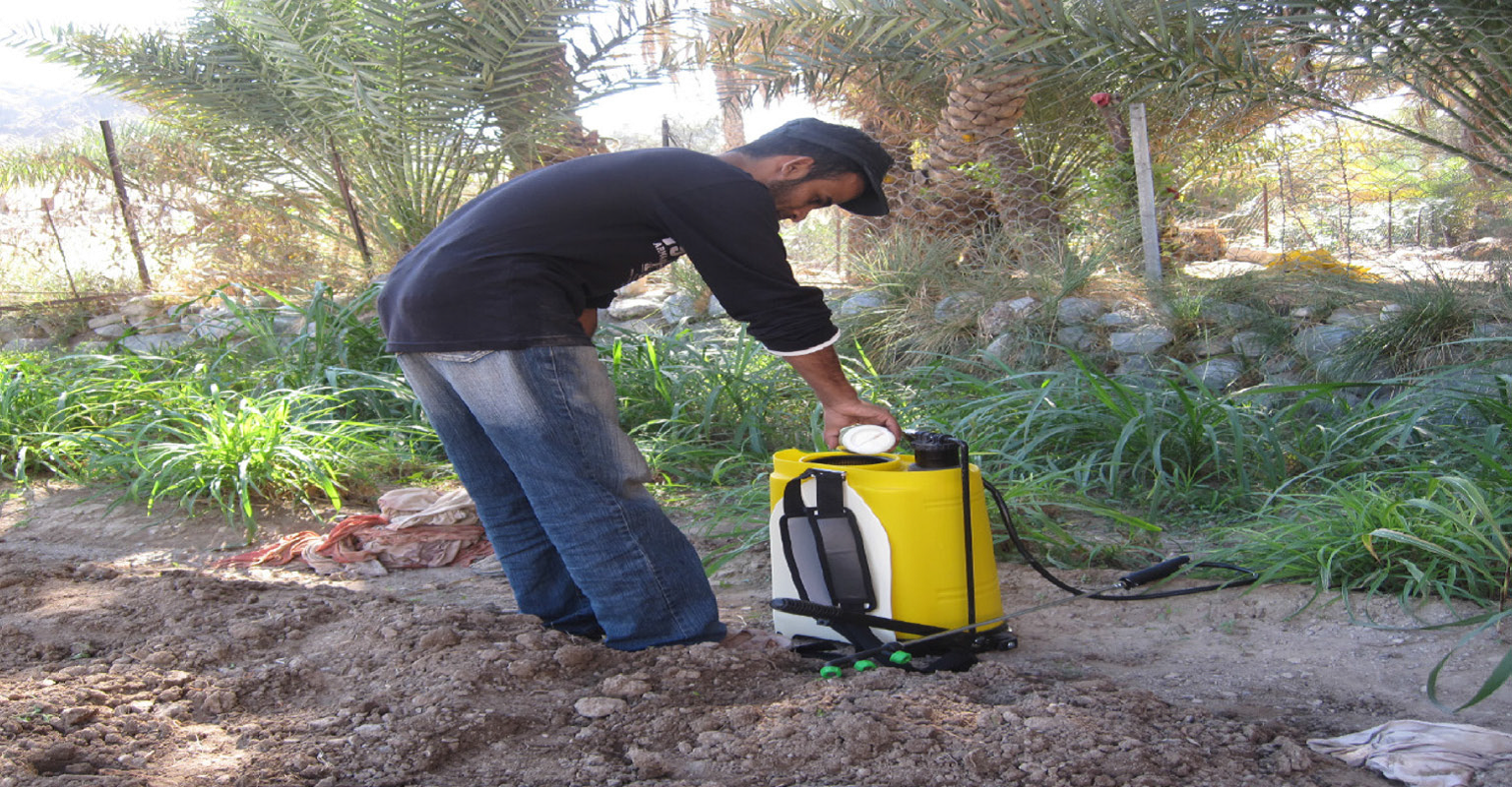 عملية تعبئة المبيد في ماكينة الرش دون أخذ الاحتياطات