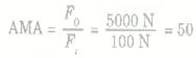 وعلى سبيل المثال. يحتاج مرفاع السيارة إلى دخل قوة قدره 100 N لرفع حمل قدره 5000 N ، ومن ثم فإن AMA للمرفاع: