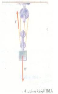 وإذا كانت كفاءة الآلة 100 في المائة فإن القوة f يمكنها أن ترفع حملاً وزنه: