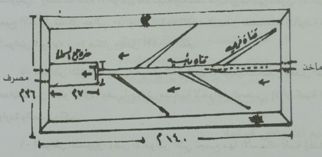 - انشاء قناة رئيسية واحدة لا مداد الاحواض بالماء تكون في منتصف المزرعة لتقليل الفقد من المياه.