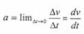 وتكون إشارة متجه التسارع موجية أو سالبة اعتماداً على إشارة متجه التغير في السرعة. كما أن التسارع الآني يعرف على أنه غاية أو نهاية دالة معدل التسارع عندما تقترب t∆ من الصفر ويساوي المشتقة الأولى لدالة السرعة بالنسبة للزمن حيث: