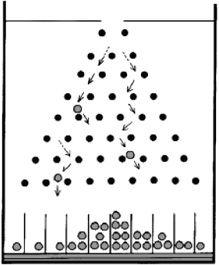 We can illustrate the idea with a simple mechanical experiment. If you drop a ball-bearing through the opening in the top of a pinboard box it will progress downwards, being deflected one way or the other by the different pins it encounters on route until it reaches a finishing slot at the bottom. You might then attempt to let another identical ball-bearing go from the very same position with exactly the same velocity. If you could do this exactly then the Marquis de Laplace would be correct and the path followed by the ball would be exactly the same. If the first ball dropped into the third slot from the right, then so would the second ball.