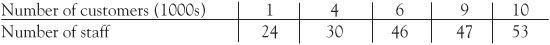Regression is a powerful technique and is widely applicable. Let’s suppose that, for a survey, the operational research team of a popular retail chain chooses five of its stores, from small outlets (with 1000 customers a month) through to mega-stores (with 10,000 customers a month). The research team observes the number of staff employed in each. They plan to use regression to estimate how many staff they will need for their other stores.