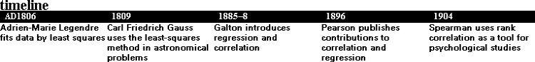 The term correlation was introduced by Francis Galton in the 1880s. He originally termed it ‘co-relation’, a better word for explaining its meaning. Galton, a Victorian gentleman of science, had a desire to measure everything and applied correlation to his investigations into pairs of variables: the wing length and tail length of birds, for instance. The Pearson correlation coefficient, named after Galton’s biographer and protégé Karl Pearson, is measured on a scale between minus one and plus one. If its numerical value is high, say +0.9, there is said to be a strong correlation between the variables. The correlation coefficient measures the tendency for data to lie along a straight line. If it is near to zero the correlation is practically non-existent.