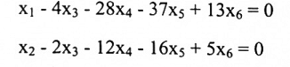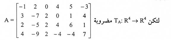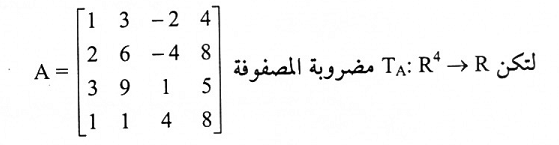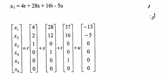 إذن المتجهات الأربعة هي أساس فضاء الحل. لذا فإن rank (A) = 2 و null(A) = 4 وبموجب المبرهنة (6-2-3) فإن rank (TA) = 2 و null (TA) = 4