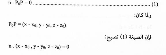 واضخ من الشكل (1-1) أن المستوى المطلوب يتكون من تلك النقاط P (x, y, z) بحيث يكون المتجه p0p عمودياً على المتجه n. بمعنى آخر