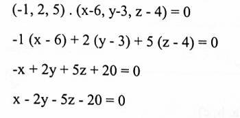مثال (3): أوجد معادلة المستوى المار بالنقطة (4,3,4) وعمودياً على المتجه (n = (-1,2,5.