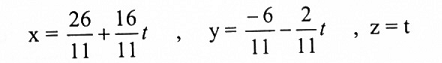 خط تقاطع المستويين يتكون من جميع النقاط (x, y, z) التي تحقق المعادلتين وبحل المعادلتين نجد: