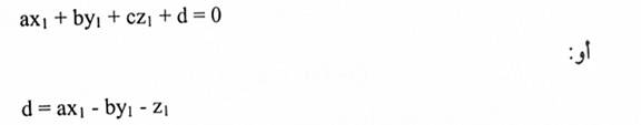 لكن Q (x1, y1, z1) واقعة في المستوى، فإن إحداثيات تحقق معادلة المستوى