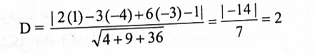 أوجد المسافة من النقطة P (1,-4,3) للمستوى 2x + 3y + 6z = 0