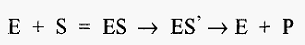 the initial velocity, expressed as a function of the concentrations of free enzyme [E] and substrate, is described by the equation:-