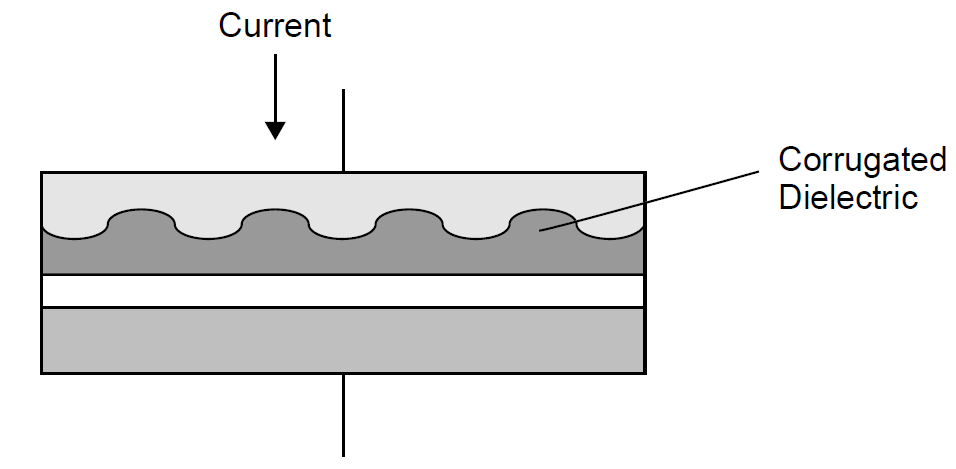 a single well-defined wavelength (determined by the distance between peaks in the corrugation). Such a reflector acts much like a high-performance dielectric mirror, with the specific wavelength of maximum reflectivity called the Bragg wavelength.
