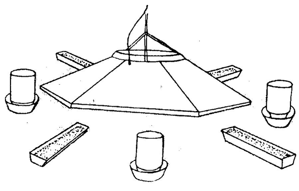 ارتفاعه 30 سم بشكل دائرة على بعد 60 سم من حافة مدفأة الحضانة، يعمل هذا الحاجز على منع التيارات الهوائية عن الكتاكيت الصغيرة. في حالة استعمال الماء الساخن في التدفئة توضع حواجز الكتاكيت على بعد متر من الحافة الخارجية للمدفأة ، في بعض الأحيان قد يستعمل بعض الألواح المتحركة بارتفاع 30 سم بدلا من الورق المقوى . وعندما تكون درجة حرارة المسكن (العنبر) 70فْ أو أعلى فإن حواجز الكتاكيت يستغنى عن استعمالها أو قد تستبدل بسلك شبكي سعة فتحاته 3/4-1 بوصة يزال بعد أربعة ايام . حواجز الكتاكيت يستغنى عنها بعد أسبوع.