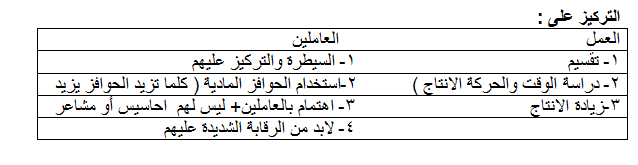 العاملين / السواق ____ركز المدراء على _____ رفع الكفاية الإنتاجية _أفكارهم )افتراضاتهم )______ تحقيق المثالية في العمل