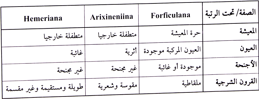 - فرن الاستشعار مكون من 16-30 عقلة والعقل من 4-6 مجتمعة تساوي تقريبا او اقصر من العقلة الاولى. مثل: ابرة العجوز Labidura riparia