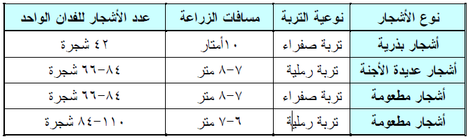 أما في حالة الأراضي التي تروى بنظام الري بالتنقيط فيمكن أن تقل مسافات الزراعة بمقدار متر عن المسافات السابقة.