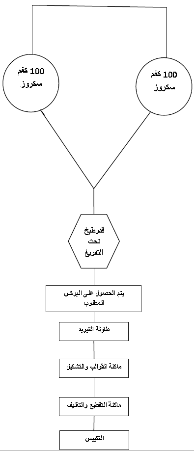 مخطط يوضح استعمال السكر السائل بنسبة 37.5 % وبدون اضافة الدكسترين ويتم تحضيرها كالاتي: