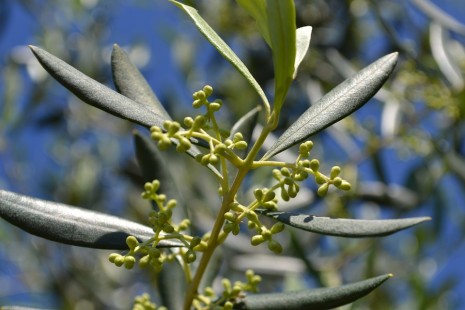 اوراق الزيتون متقابلة التوضع على الطرود والعناقيد الزهرية في اباط هذه الاوراق