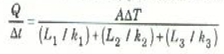 وفي الابنية الحديثة تتكون الحوائط عادة من طبقات عديدة متوازية. فإذا افترضنا أن لدينا حائطاً مكوناً من ثلاث طبقات موصلياتها الحرارية k3 ،k2 ، k1 وسموكها L3 ،L2 ، L1 ، فإن معدل انسياب الحرارة خلال هذا الحائط سيكون: