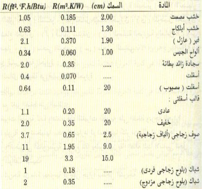 الجدول 1)) العامل R بالتقريب لبعض المواد