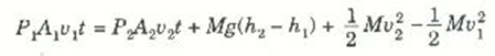 الشكل 1)): الشغل المبذول بواسطة F1 (وهو يساوي P1A1) يساوي الشغل المبذول ضد القوة F2 ( والذي يساوي P2A2) مضافاً إليه التغيرات في طاقتي الحركة الوضع للسائل.