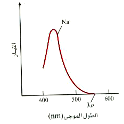 الشكل 3)): تتناسب طاقة الإلكترون عكسياً مع الطول الموجي. ويمثل هذا الخط البياني الخاص فلز الصوديوم.