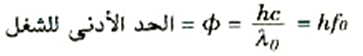 اللازمة لانتزاع إلكترون من اللوح مساوية تماماً لطاقة فوتون ذي طول موجي مشرفي. وعلى ذلك يكون أدنى شغل يلزم لانتزاع الالكترون وتحريره من الجسم الصلب هو