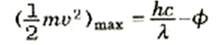وعندما يكون للفوتون طاقة أكبر من ϕ، أي عندما يكون λ أصغر من 0λ فإن الإلكترون لن يقتلع من اللوح فحسب وإنما سيمتلك فائضاً من الطاقة أيضاً. أي أن جزءاً من طاقة الفوتون hc/λ سوف يفقد لبذل الشغل ϕ، او لتحرير الإلكترون أما الباقي فيظهر على صورة طاقة حركة الإلكترون. وعلى ذلك يمكنننا بالنسبة لطاقات عير نسبوية، أن نكتب ما يلي: