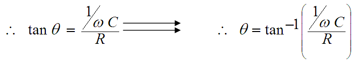 و بمقارنة هذه المعادلة و المعادلة (1) نجد أن التيار يسبق الجهد بزاوية مقدارها θ أو أن الجهد يتأخر عن التيار بهذه الزاوية. كما أن المقدار