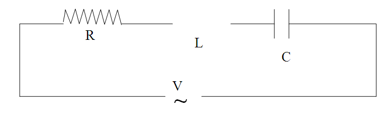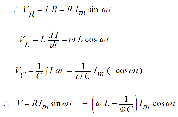 يبين الشكل الآتي دائرة كهربية تتكون من مقاومة R و ملف معامل حثه الذاتي L و مكثف سعته C متصلين على التوالي مع مصدر جهد متردد.