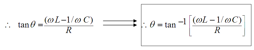 3- أما اذا كان ω L < 1/ ω C فأن الدائرة تكون سعوية و تكون زاوية الطور سالبة و في هذه الحالة يتقدم التيار على الجهد.