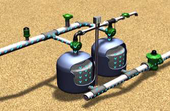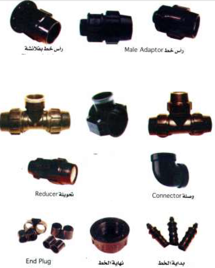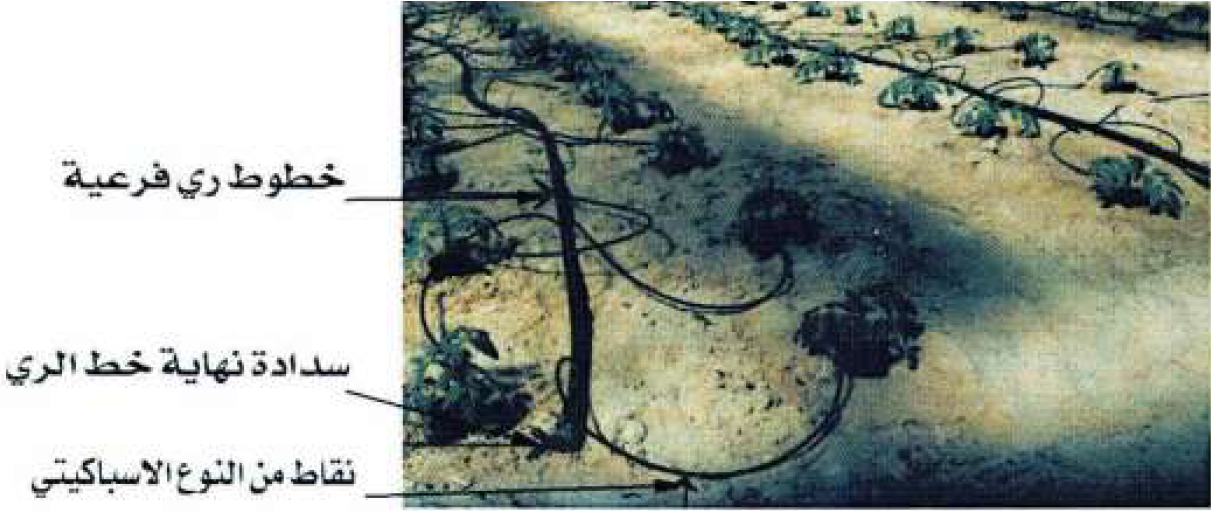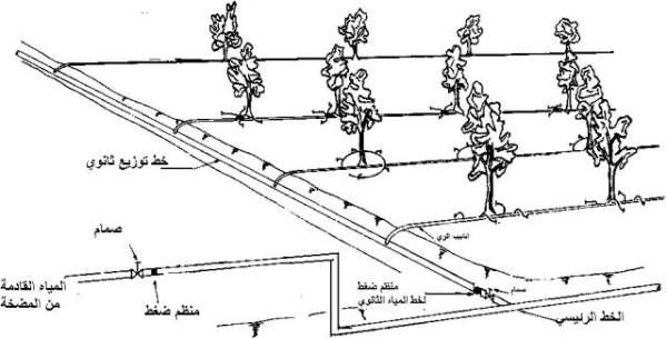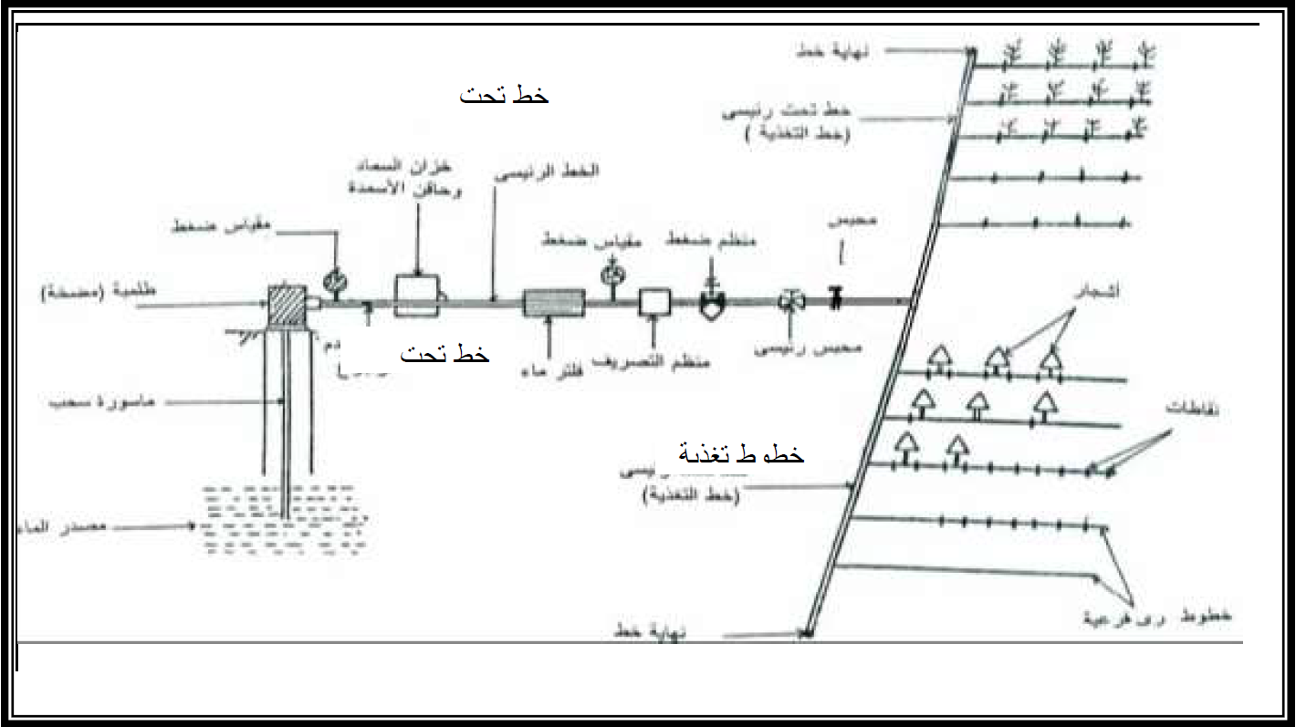 يوضح الشكل رسم تخطيطي لنظام ري يشمل على المكونات التالية: