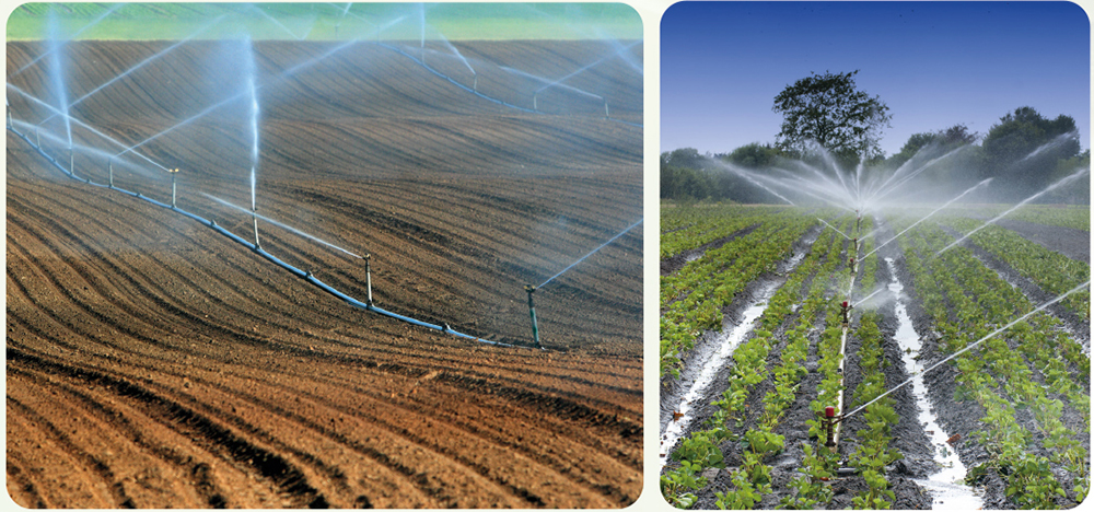 تتأقلم أنظمة الري بالرش مع الأراضي الغير المسطحة تماما، سواء كان ذلك بواسطة تجهيزات الري بالرش العتيقة عبر الأنابيب أو بواسطة آلات الري الحديثة نسبيا.