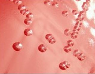 مستعمرات النوع البكتيري L. monocytogenesعلى الوسط الغذائي Blood agar.