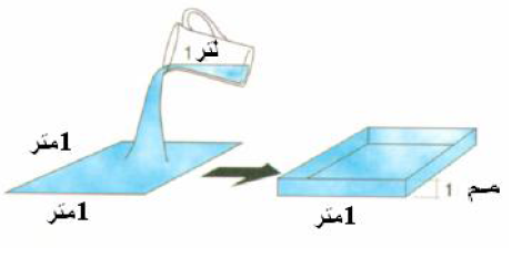 يقاس الماء باللتر في المتر المربع من سطح الأرض أو كما نقيس ماء المطر أي بالملمترات ونذكر أن مليمتر من ماء المطر يعني لترا من الماء في المتر المربع من سطح الأرض، فمثلا 50 مم تعني 50 لترا من المطر في المتر المربع من الأرض.
