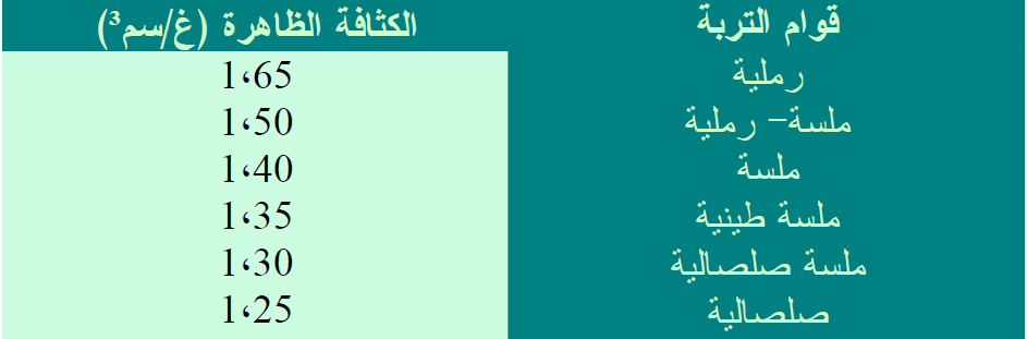 في الغالب تحسب الرطوبة بضرب قيمة الرطوبة الجاذبية في الكثافة الظاهرة للتربة، والكثافة الظاهرة هي النسبة بين وزن عينة من التربة وحجم هذه العينة نفسها، وهي تختلف من تربة إلى أخرى وإن كانت قيمتها متقاربة للتربة التي لها قوام متشابهة، ونستعمل الغرام / سم³ كوحدة للكثافة الظاهرة.