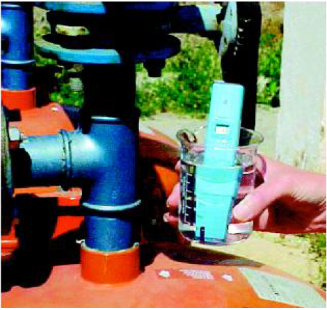 قياس التوصيل الكهربائي لماء الري بواسطة مقياس التوصيل المحمول