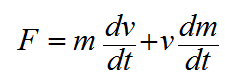 و من وجهة نظر الفيزياء الكلاسيكية أن السرعة هي فقط التي تعتمد على الزمن و لكن من دراستنا للنظرية النسبية وجدنا أن كل من السرعة و الكتلة تتغير مع الزمن، و لذلك تأخذ المعادلة السابقة الشكل التالي (من وجهة نظر النسبية الخاصة):