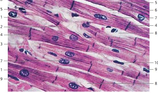 Note: in contrast with skeletal musculature, the myocardium consists of separate single cells. The heart muscle tissue does not regenerate.