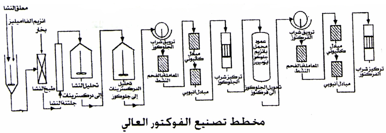ونبين فيما يلي باختصار مخطط تصنيع الفركتوز العالي.