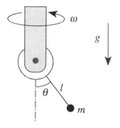 The bearing of a rigid pendulum of mass m is forced to rotate uniformly with angular velocity ω (see Figure 1.1). The angle between the rotation