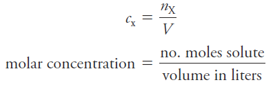 In terms of the number of moles of solute, n, and the volume, V, of solution, we write