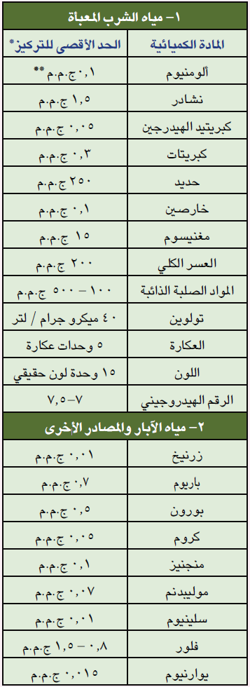 * الحد الاقصى المسموح بوجوده حتى تصبح به المياه صالحة للشرب