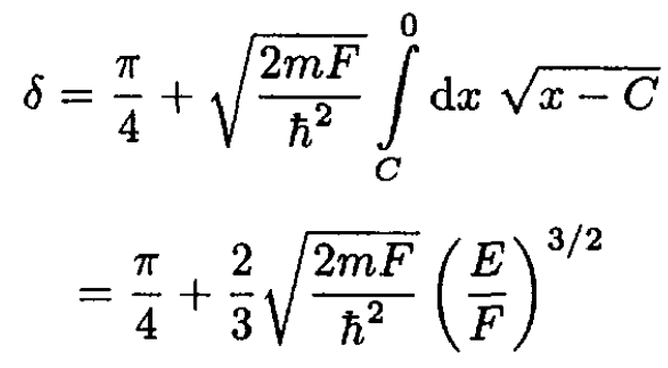 For the present problem we have that V = 0 for x > 0, and this part of the integral exactly cancels the term –kx. For x < 0 the potential is V = -Fx, assuming that F > 0. The turning point is C = -E/F, so we have