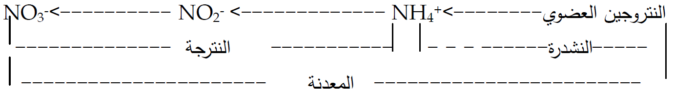 تحول النتروجين من الشكل العضوي الى الاشكال المعدنية او بتعبير اخر الى الاشكال الجاهزة للامتصاص من النبات وتشمل على عدد من الخطوات كما يأتي:
