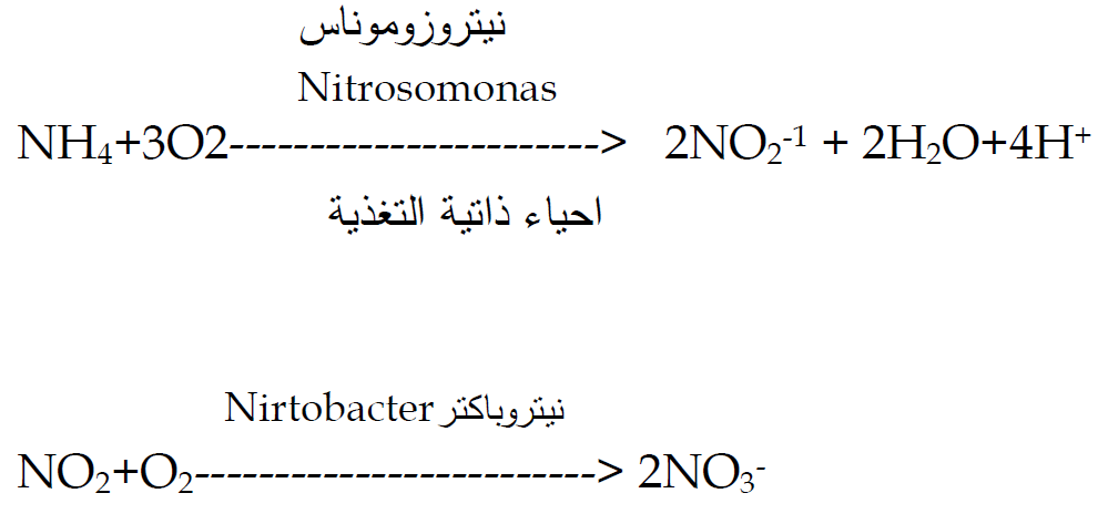 اكسدة الامونيوم الى النتريت والنترات وكما يأتي: