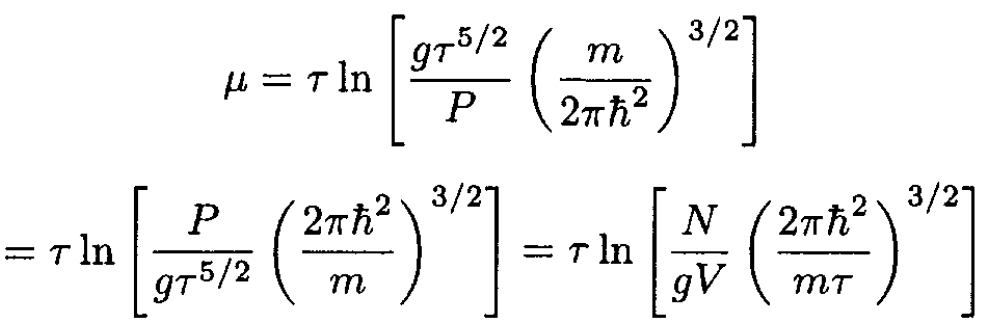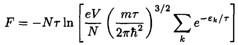 This approximation is valid when the temperature is much lower than the energy difference ∆E between the electronic ground state and the first excited state; since this ∆E is comparable to the ionization energy εion, this condition is equivalent to τ << εion. However, even at temperatures τ ~ εion, the gas is almost completely ionized. Therefore (4) is always valid for a nonionized gas.