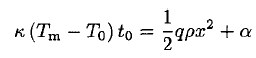 where Tm is the melting temperature of ice. The left side represents the flow of heat through one square meter of ice surface due to the temperature gradient, and the right side the amount of heat needed to melt (freeze) an amount of ice ρ dx. Integrating (1), we obtain