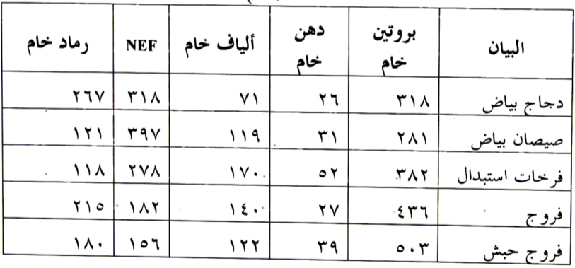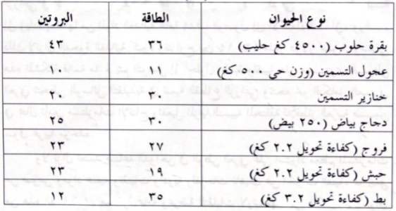 ويلاحظ من الجدول ان الابقار الحلوب افضل الحيوانات في مجال الاستفادة من الطاقة والبروتين يليها مباشرة الدجاج البياض والفروج.